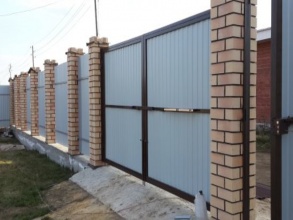 • Конструкция откатных ворот с кирпичными столбами