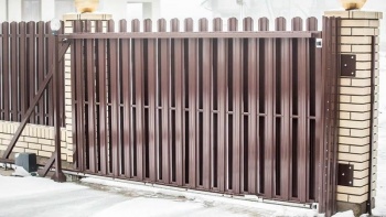 Заборы из металлического штакетника с кирпичными столбами в Советске